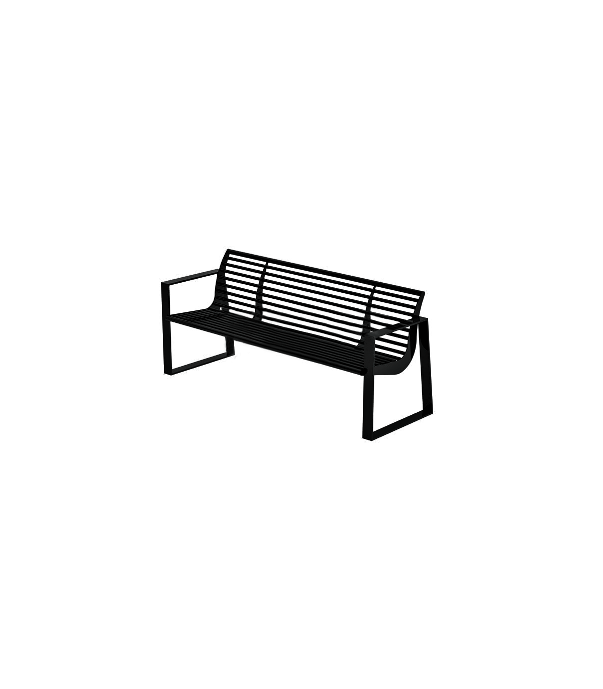 Banca para exteriores. Fabricada en acero al carbón, con acabado de pintura electrostática con pretratamiento de fosfato de zinc y/o sandblast.